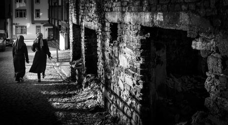Keywords: avenue street photography monochrome black and white white on architecture ruins old istanbul turkey light dark shadow shadows black street city