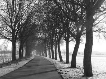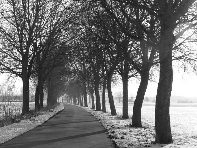 Keywords: avenue trees road nature landscape winter cold wintry
