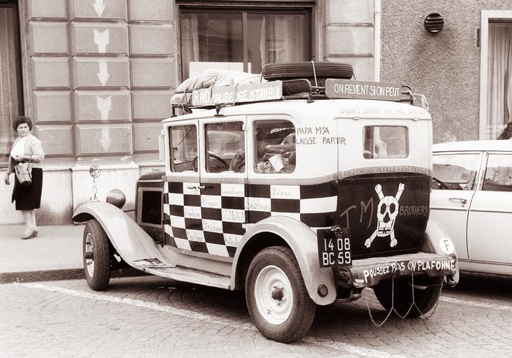| Keywords: Avtomobilček treh francoskih študentov parkiran na Grajskem trgu 1961.jpg Citroën C4 1928-1932 Avtomobilček treh francoskih študentov parkiran na Grajskem trgu 510126 1961-08-03 creator Danilo Škofič PD-Slovenia 1961 in road transport 1961 in Slovenia 1961 in tourism 1961 photographs August 1961 in Europe Historical black and white photographs of Maribor Citroën Type C4 English inscriptions in Slovenia French inscriptions in Slovenia Former license plates of Nord 59 Humor Parked automobiles in Maribor People of Maubeuge Photographs by Danilo Škofič Skull and crossbones Students in France Tourism in Maribor Tourism in Turkey Black and white photographs of automobiles Antique vehicle license plates |