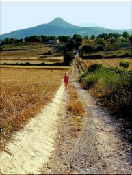 Keywords: away landscape nature field lane grass summer meadow perspective wide south holiday lonely mountains dry hot island mallorca finca stones child running child trees horizon landscapes mediterranean access driveway idyll