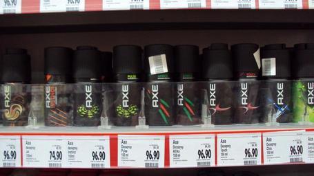 Keywords: AXE spray.jpg cs AXE spray od firmy Unilever v regálech Kauflandu Česká Lípa own Zákupák 2009-12-17 Axe grooming product Kaufland Česká Lípa