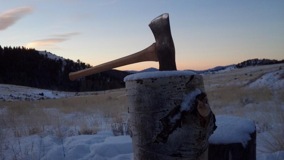 Keywords: axe sunrise split wood stump snow dawn firewood off grid