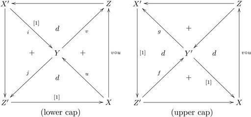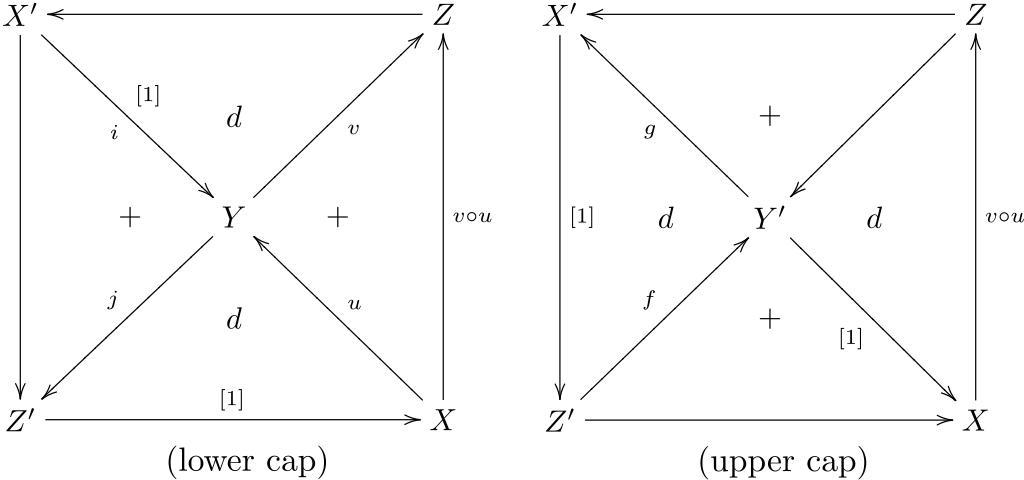 | Keywords: Axiom TR4 (caps).svg LaTeX source <pre> \documentclass amsart \usepackage amsmath amssymb nopageno \usepackageall xy \begin document \begin align \underset \text \large lower cap \xymatrix 2em X' \ardddd \arddrr_i 1 Z \arllll \\ d \\ + Y \aruurr_v \arddll_j + \\ d \\ Z' \arrrrr 1 X \aruull_u \aruuuu_ v \circ u \underset \text \large upper cap \xymatrix 2em X' \ardddd 1 Z \arllll \arddll \\ + \\ d Y' \aruull g \arddrr_ 1 d \\ + \\ Z' \aruurr f \arrrrr X \aruuuu_ v \circ u \end align \end document </pre> A depiction of axiom TR4 of a triangulated category The figure in File Axiom TR4 polyhedron svg is rendered two-dimensionally as its upper and lower halves I created this work entirely by myself 2009-01-14 Ryan Reich <span class signature-talk >talk</span> File Octahedral diagram variant svg w File Axiom TR4 caps svg Commutative diagrams Homological algebra Mathematical diagrams Images with LaTeX source code |