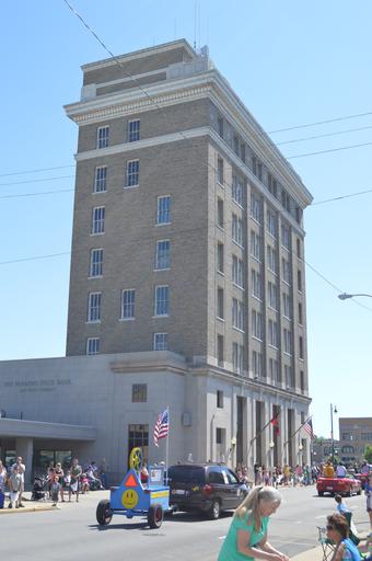 | Keywords: Ayers Bank Building in Jacksonville.jpg 86003178 39 44 4 N 90 13 49 W Western side and front of the w Ayers Bank Building located at 200 W State Street in Jacksonville Illinois Jacksonville Illinois United States Built in 1911 it is listed on the National Register of Historic Places In the foreground members of the Jacksonville Rotary International Rotary club ride on a float during the city's Independence Day parade own 2014-07-04 User Nyttend Nyttend No<nowiki></nowiki>ne Built in Illinois in 1911 4th of July Celebration 2014 Banks in Illinois Brick buildings in Illinois Jacksonville Illinois National Register of Historic Places in Morgan County Illinois Parades in Illinois Rotary International Building-centered pictures by User Nyttend |