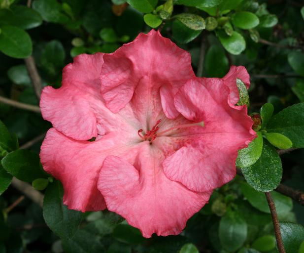 Keywords: azalea flower bloom coral pink open shrub ornamental nature plant bush spring perennial
