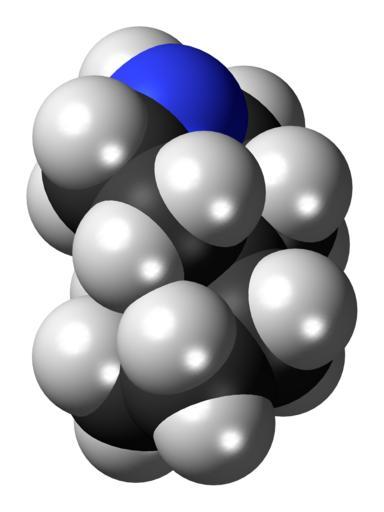 | Keywords: Azaspirodecane 3D spacefill.png Space-filling model of the azaspirodecane molecule a spiro compound Colour code 505050 Carbon C black<br> F0F0F0 Hydrogen H white<br> 3C50FA Nitrogen N blue<br> 2011-07-03 own DS Visualizer Jynto talk Ball-and-stick version cc-zero Images by Jynto Space-filling models Piperidines Spiro compounds cyclopentane derivatives |