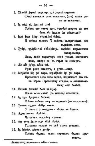 Keywords: Azerbaijani proverbs 52.jpg en Page with Azerbaijani proverbs written by Alexander Kalashev from the words of Rza Miriyev inhabitant of Khatynbulag village Jabrayil uyezd Yelizavetpol guberniya Сбо ник мате иалов для описания местностей и племен Кавказа Выпуск восемнадцатый Отдел II Ст 52 Azerbaijani proverbs written by Alexander Kalashev from the words of Rza Miriyev 1894 PD-old Azerbaijani proverbs Azerbaijani manuscripts |