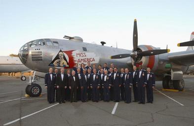 Keywords: B-29 Miss America 62 Nose Art.jpeg en The 15th Air Force AF hosted a special dinner on September 27 2003 at the Travis Air Force Base AFB Museum to commemorate its history and forthcoming transition from a Numbered Air Force to an Expeditionary Mobility Task Force Gathered here are wing commanders and their chiefs from all the 15th AF units Also in attendance are Lieutenant General John J Murphy the fifteenth 15th AF Commander General John Gonge former Vice Wing Commander of Mobility Airlift Command and Mr Robert Arnold the grandson of General Hap Arnold This photo taken in front of the B-29 Stratofortress Miss America 62 at the museum on Travis AFB California 2003-09-27 19 01 15 NARA-image 6648929 Kristina P Cilia CIV USAF PD-USGov Uploaded with UploadWizard Nose art on B-29 Miss America 62 Aircraft at Travis Air Force Base Group photographs with aircraft military B-29 Superfortress museum aircraft |
