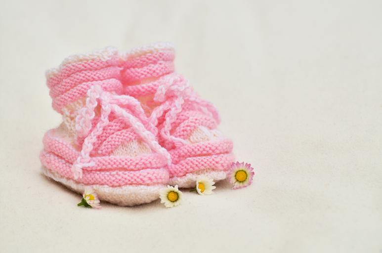 Keywords: baby girl greeting birth birth announcement baby shoes knitted gift small child pink hand labor wool knit