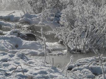 Keywords: bach water running steam winter hoarfrost snow deep snow wintry