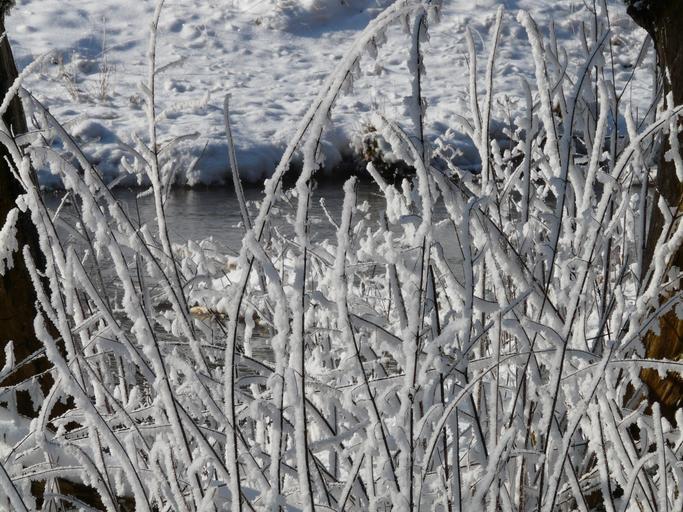 Keywords: bach water running winter hoarfrost snow deep snow wintry