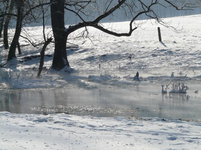 Keywords: bach water running winter hoarfrost snow deep snow wintry