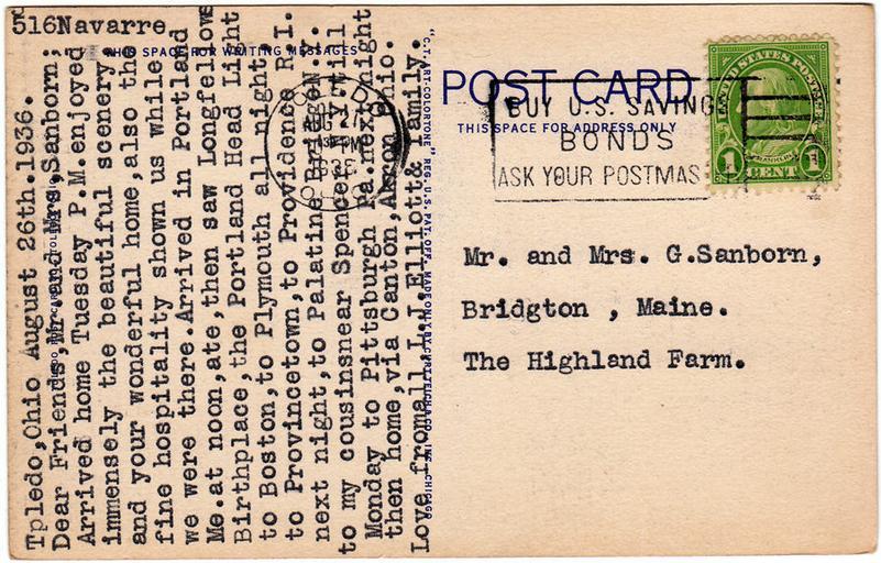 Keywords: postcard postcards used toledo, ohio toledoohio toledo ohio white border whiteborder white border era whiteborderera divided back dividedback stamp cancel slogan cancel slogancancel buy u.s. savings bonds buyussavingsbonds postmarked 1930s 1936 curt teich co. curtteichco curteich toledo post card co. toledopostcardco text document Description on front of card:Skyline Showing Cherry Street Bridge, Toledo, Ohio No. in Series: 3 Publisher: Toledo Rosy Card Co., Toledo, Ohio | Curteich & Co. Inc. Used. Publisher Note: Curt Teich emigrated to Chicago in 1895. He had worked as a lithographer in Lobenstein, Germany. He founded the Curt Teich Company in 1898, concentrating on newspaper and magazine printing. He was an early publisher of postcards, but he didn't begin printing them himself until 1908. According to MetroPostcard.com, "As his competition dwindled, his sales expanded and his American factories would eventually turn out more postcards than any other in the United States. " The company was best known for their wide range of advertising and postcards of North America. By the 1920s, it was producing so many postcards with borders that they became recognized as a type dubbed "White Border Cards," creating an "era." Curt Teich started using offset presses in 1907, but it took a number of years before he had offset presses made to his satisfaction, and many more years for him to perfect the method. His innovations in this printing technique directly led to the production of what we now call "linens" by the early 1930s. The company aided the war effort during the second world war by also printing many military maps. Curt Teich eventually turned management of the company over to his son, but he remained active in company operations throughout its history. Curt Teich died in 1974 and the family business was sold to Regensteiner Publishers who continued to print postcards at the Chicago plant until 1978 when the rights to the company name and processes were sold to the Irish company, John Hinde Ltd. Their California subsidiary now prints postcards under the name John Hinde Curteich, Inc. Source: www.metropostcard.com/publisherst.html Description on front of card:Skyline Showing Cherry Street Bridge, Toledo, Ohio No. in Series: 3 Publisher: Toledo Rosy Card Co., Toledo, Ohio | Curteich & Co. Inc. Used. Publisher Note: Curt Teich emigrated to Chicago in 1895. He had worked as a lithographer in Lobenstein, Germany. He founded the Curt Teich Company in 1898, concentrating on newspaper and magazine printing. He was an early publisher of postcards, but he didn't begin printing them himself until 1908. According to MetroPostcard.com, "As his competition dwindled, his sales expanded and his American factories would eventually turn out more postcards than any other in the United States. " The company was best known for their wide range of advertising and postcards of North America. By the 1920s, it was producing so many postcards with borders that they became recognized as a type dubbed "White Border Cards," creating an "era." Curt Teich started using offset presses in 1907, but it took a number of years before he had offset presses made to his satisfaction, and many more years for him to perfect the method. His innovations in this printing technique directly led to the production of what we now call "linens" by the early 1930s. The company aided the war effort during the second world war by also printing many military maps. Curt Teich eventually turned management of the company over to his son, but he remained active in company operations throughout its history. Curt Teich died in 1974 and the family business was sold to Regensteiner Publishers who continued to print postcards at the Chicago plant until 1978 when the rights to the company name and processes were sold to the Irish company, John Hinde Ltd. Their California subsidiary now prints postcards under the name John Hinde Curteich, Inc. Source: www.metropostcard.com/publisherst.html |