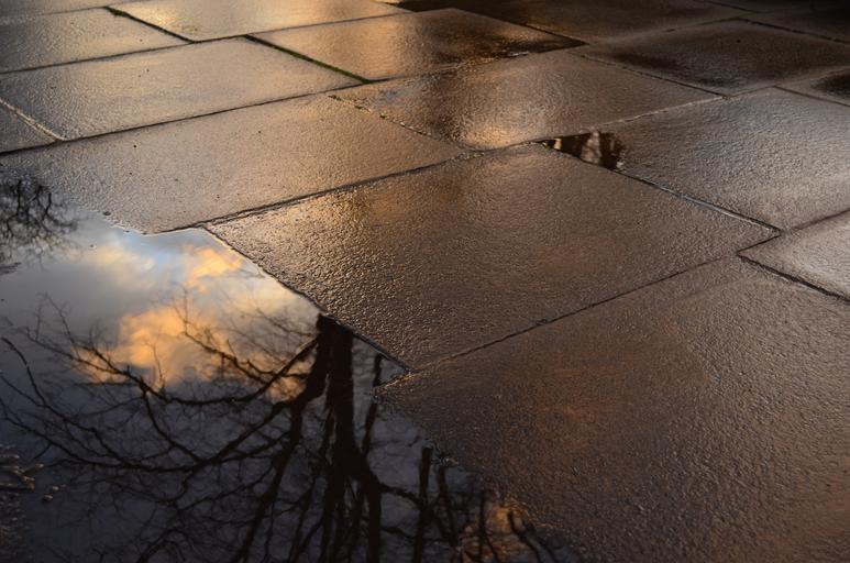 Keywords: background card clouds trees pavement road rain