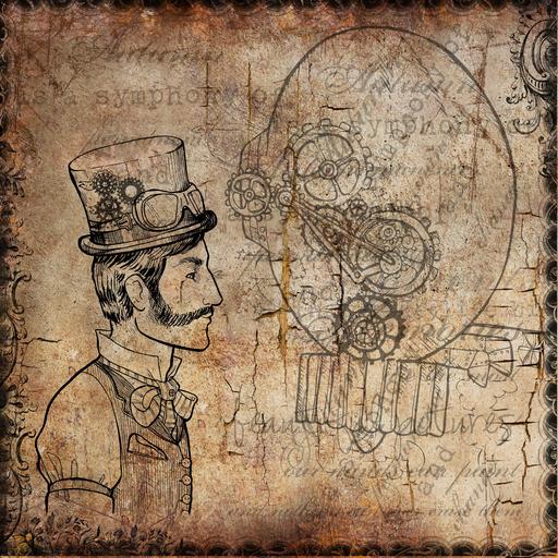 Keywords: background man steampunk gears brown paper old antique globe distressed vintage grunge grungy rustic style traditional aged design decoration scrapbooking arts and crafts scratched drawing