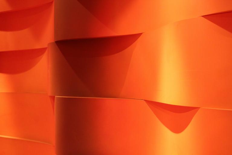 Keywords: background red light atmosphere vibration orange color texture textures form wall design decoration deco shadow light object modern contrast structure object lighting illuminated