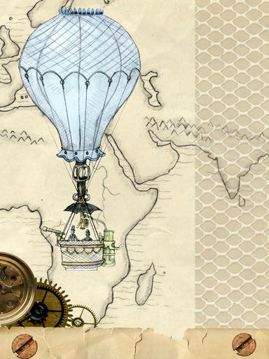 Keywords: background steampunk hot air balloon map paper parchment gears pattern texture portrait template card charming creative decoration man love nice scrapbooking decoupage arts crafts