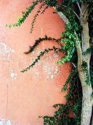 Keywords: background stone wall pink tree green impressions