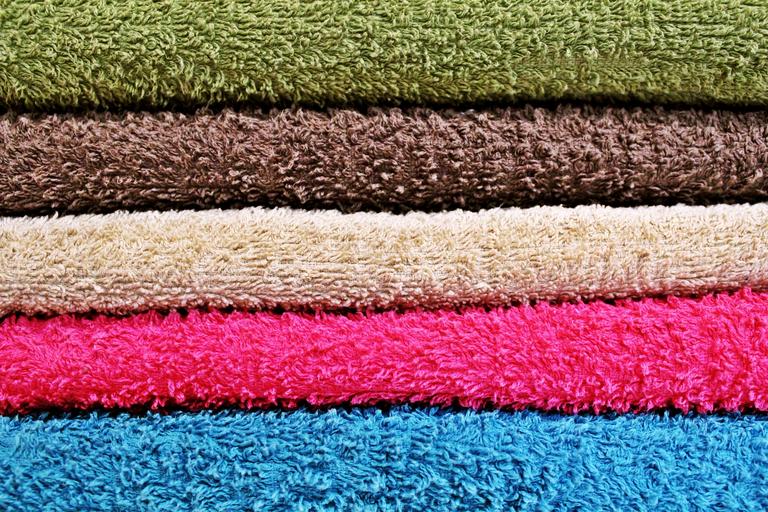 Keywords: background towels colorful color bath towels dry textile soft structure cuddly terry tissue fabric green brown beige pink blue