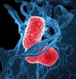 Keywords: bacteria electron microscope klebsiella pneumoniae stained red pneumonia bacterium pathogen science microbiology epidemic organism health sickness macro blue stain white blood cell
