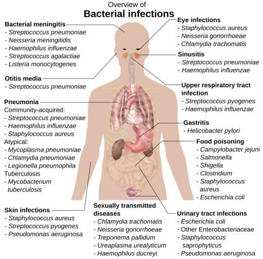 MAKE A MEME View Large Image Bacterial infections and involved species.svg en Simplistic overview of the main bacterial infections and the most notable involved species See also Wikipedia Bacteria Pathogens To discuss image please see Template talk Human body diagrams ...