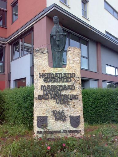 | Keywords: Bad Homburg Denkmal Egerland.jpg en Memorial in Bad Homburg vor der Höhe Hesse Germany to remind on German refugees Heimatvertriebene from Egerland settling in Bad Homburg after WW II de Vertriebenendenkmal in Bad Homburg Es erinnert an die Vertriebenen aus dem Egerland die in Bad Homburg Zuflucht gefunden haben Der Standort ist gegenüber dem Bahnhof neben dem Gebäude von Amadeus own Karsten11 2009-05-21 Monuments and memorials in Bad Homburg vor der Höhe Monuments and memorials to Heimatvertriebene in Hesse BadHomburg 1982 monuments and memorials in Germany Ž |