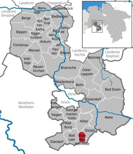 Keywords: Bad Rothenfelde in OS.svg DeLocMaps Bad Rothenfelde Landkreis Osnabrück District of Osnabrück Osnabrück district L'arrondissement d'Osnabrück Arrondissement d'Osnabrück Niedersachsen Lower Saxony Basse-Saxe TUBS/Translation own Adobe Illustrator based on File Lower Saxony location map svg NordNordWest http //www landkreis-osnabrueck de/pics/medien/1_1221811658/Zwei_Wege_Strategie pdf Landkreis Osnabrück Die 2-Wege-Strategie im Landkreis Osnabrück File Locator map OS in Lower Saxony svg TUBS 2009-06-20 TUBS TUBS GFDL cc-by-3 0 2 5 2 0 1 0 cc-by-sa-3 0 2 5 2 0 1 0 TUBS/Credits Locator maps of municipalities in Landkreis Osnabrück Bad Rothenfelde |