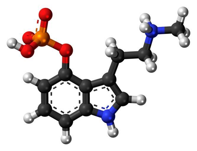 | Keywords: Baeocystin zwitterion 3D ball.png Ball-and-stick model of the baeocystin molecule a compound found in magic mushrooms alongside psilocybin This image shows it as a zwitterion Colour code 505050 Carbon C black<br> F0F0F0 Hydrogen H white<br> F51E1E Oxygen O red<br> 3C50FA Nitrogen N blue<br> FA8C00 Phosphorus P orange<br> 2011-06-13 own DS Visualizer Jynto talk Neutral form ball-and-stick version Neutral form space-filling version Zwitterionic form space-filling version cc-zero Indole alkaloids Psychoactive drugs Tryptamines Organophosphates zwitterions Images by Jynto Ball-and-stick models |