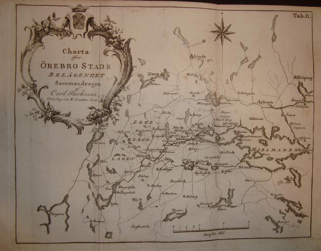 Keywords: Bagge4.JPG sv Tab 2 Charta öfver Örebro stads belägenhet ur J F Bagges bok Beskrifning om upstaden Örebro own J F Bagge 1785 Johan Fredric Bagge Old maps of Sweden Örebro