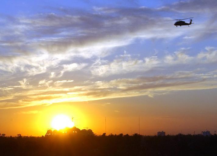 Keywords: Baghdad Sunset DVIDS17886.jpg en A UH-60 Black Hawk helicopter races against time and daylight as another day comes to an end with a beautiful sunset in Baghdad Iraq March 15 2005 The sun set behind the Al Rahman mosque which is under construction and the largest mosque in Iraq Photo by Spc Ferdinand Thomas 214th Mobile Public Affairs Detachment Released 2005-03-15 Sgt Ferdinand Thomas https //www dvidshub net/image/17886 17886 2006-04-05 14 16 BAGHDAD IQ PD-USGov UH-60 Black Hawk Images from DoD uploaded by Fæ |