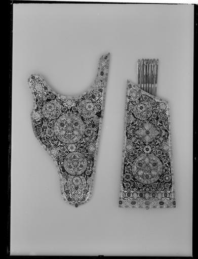 | Keywords: Bågkoger från Turkiet 1620-tal - Livrustkammaren - 1981.tif LSH artwork sv Asymmetriskt koger av brunt läder överklätt med röd sammet På framsidan yttäckande beslag av förgyllt silver i form av rankor blommor fyra runda genombrutna plattor och kantbeslag allt med graverad dekor och besatt med stora slipade gröna stenar peridoter däremellan och utmed kanterna turkoser och rubiner alla i blomformiga fattningar av guld samt små släta silverpärlor Mellan och på de stora genombrutna plattorna spetsovala konturerade förhöjningar av guld På plattan på mitten halvsfäriska buckor av guld På insidan upptill i ena hörnet ett förgyllt delvis genombrutet och graverat beslag Nertill ett läderhandtag Avsedda som gåva till Gustav II Adolf från Krim-khanen Djanibeck Giray Djanibeg Gerej men överlämnade av sändebudet Norali Oman Mirza Nur Ali Olan Mirza - Olan hög tartarisk militär titel Murza-Mirza adlig titel först 1633 Stavning av namn och läsning se E Swiecicka Förvarat i Räntekammaren 1633-1752 överlämnat till LRK enl K brev 1752-03-30 1823-1851 förvarade i Kungl Klädkammaren original caption decade 1620 leather - silver - turquoise - ruby - velvet Färg röd material sammet g 2420 size mm 751 375 LRK Djanibeg Giray Kristina av Sverige Christina drottning av Sverige 1966 Livrustkammarens basutställning 1978 Gustav II Adolf 350 år efter Lützen 1982-1984 Islamiskt i de kungliga samlingarna 1984 Bevarandets hemlighet 1991-1992 Kungens lockpipa 1995-1996 Aptitretaren 2000-2001 Statsgåvor 2009 Bilder av Kristina 2013-2014 Livrustkammaren Tatarerna kommer 2016 Vagnhallen Livrustkammaren nya basutställning 2018 LRK bas 2018 Livrustkammaren basutställning Gustav II Adolf Minnesutställning 1932 place of origin original filename LN_B16940_019820 42303 inventory number LRK 5695 1981 CC0 Bågkoger från Turkiet 1620-tal - Livrustkammaren - 1981-negative tif <gallery caption Different images of same object > File Bågkoger - Livrustkammaren - 77071 tif File Bågkoger med förgyllt silver peridoter små turkoser rubiner och silverpärlor - Livrustkammaren - 91418 tif File Bågkoger - Livrustkammaren - 4391 tif </gallery> <gallery caption Related objects > File Pilkoger av läder förgyllt silver peridoter små turkoser rubiner och silverpärlor - Livrustkammaren - 91417 tif LRK 5696 File Pilkoger - Livrustkammaren - 68512 tif LRK 5696 </gallery> Bags Media contributed by LSH unmatched material Media contributed by LSH unmatched place Media contributed by LSH 2016-12 |