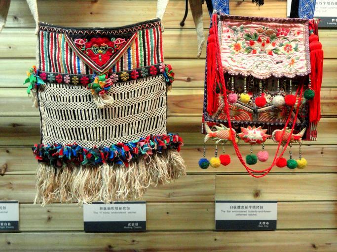 Keywords: Bags - Yunnan Nationalities Museum - DSC04149.JPG Left Yi hemp bag; right Bai embroidered bag Exhibited in the Yunnan Nationalities Museum Kunming Yunnan China I took this photograph 2011-08-13 01 52 49 Daderot Public domain Bags in the Yunnan Nationalities Museum Yi crafts Bai crafts Hemp-based products |