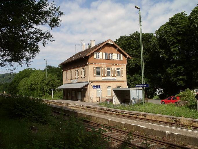 Keywords: Bahnhof in Bieringen (Rottenburg).JPG Bieringen einem Stadtteil von Rottenburg am Neckar im Landkreis Tübingen in Baden-Württemberg Deutschland Der Bahnhof ist Haltestelle für Regionalbahnen der Oberen Neckarbahn Kursbuchstrecke 774 zwischen Horb am Neckar und Tübingen Der Bahnhof liegt etwa 500 m südlich des Ortes rechts des Neckars Er ist über eine Fußgängerbrücke oder mit dem Auto ca 1 km zu erreichen Bieringen a suburb of Rottenburg am Neckar in the District of Tübingen in the German State of en Baden-Württemberg The station is a stopping point for regional trains of the Obere Neckarbahn Railway Route 774 between Horb am Neckar and Tübingen The station is situated about 500 meters southern of the village on the right side of the Neckar river The station is attainable over a pedestrian bridge or by car ca 1 km Bieringen un faubourg de la ville de Rottenburg am Neckar dans l'arrondissement de Tübingen dans le Land de Bade-Wurtemberg Allemagne Own Simon M Baur 16 Juli 2008 // July 16 2008 // 16 Juillet 2008 Buildings in Rottenburg am Neckar Train stations in Landkreis Tübingen Cultural heritage monuments in Bieringen Rottenburg |