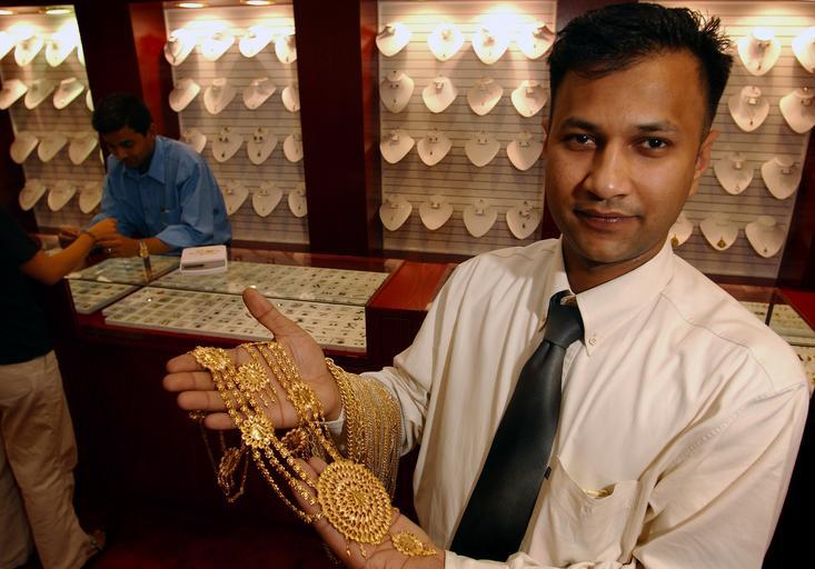 | Keywords: Bahrain jeweler.jpg 030901-N-6967M-057 Gold it's the first thing you hear about Bahrain and it's very inexpensive It's not the gold itself that you save money on though it's the workmanship In the U S you pay for the work that goes into the jewelry while in Bahrain you pay market value for the gold All Hands September 2003 pg 32 Photo by PH1 Shane T McCoy RELEASED http //www news navy mil/view_ahhphotos asp page 65 Shane T McCoy 2003-09 PD-USGov-Military-Navy Photographs by Shane T McCoy Shops in Bahrain Jewellery shops |