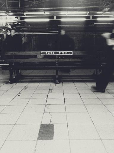 Keywords: baker street train subway track transport travel underground public railway metro station sign transportation railroad urban rail speed sherlock holmes commuters people passengers commute passenger traffic commuting destination