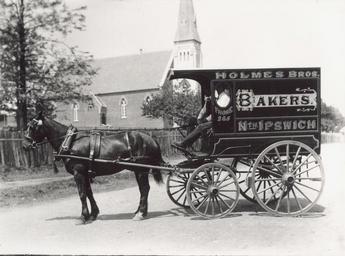 Keywords: Baker's-van-r.jpg en Holms Brothers baker ™s van Every street in Australian towns was served by delivery vehicles such as this baker ™s van Most families did not own a buggy to go shopping so milkmen butchers bakers fruiterers fish mongers all delivered door-to-door This van was built in the AE Roberts workshop and photographed in the street outside Queensland Museum holds over 1000 of Bert Roberts' plate glass negatives and prints from the era Queensland Museum Creator A E Roberts Digitised by Queensland Museum beginning 1900 The original image is public domain The plate glass negative is owned by Queensland Museum Digitisation of this image is licensed under CC BY SA 3 0 QM_Infobox baker's-van-r jpg PD-Australia URAA entered in force in the U S History of Ipswich Queensland A E Bert Roberts plate glass photo collection Glass plate negatives Early 20th Century Queensland Horse-drawn wagons in Australia Queensland Museum Queensland Museum Collections Retail vehicles in Australia Bakery retail vehicles