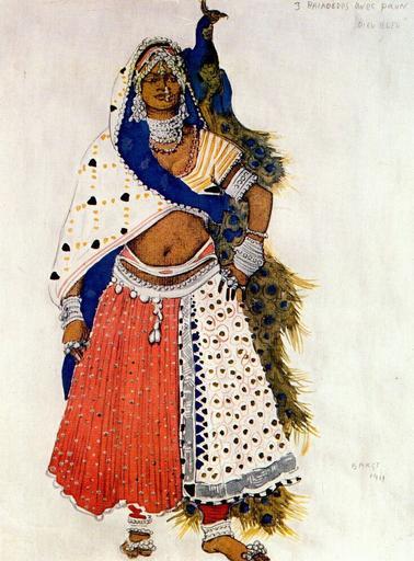 View Original:bakst_le_dieu_bleu_bayadere_with_peacock_1912.jpg (734x994)