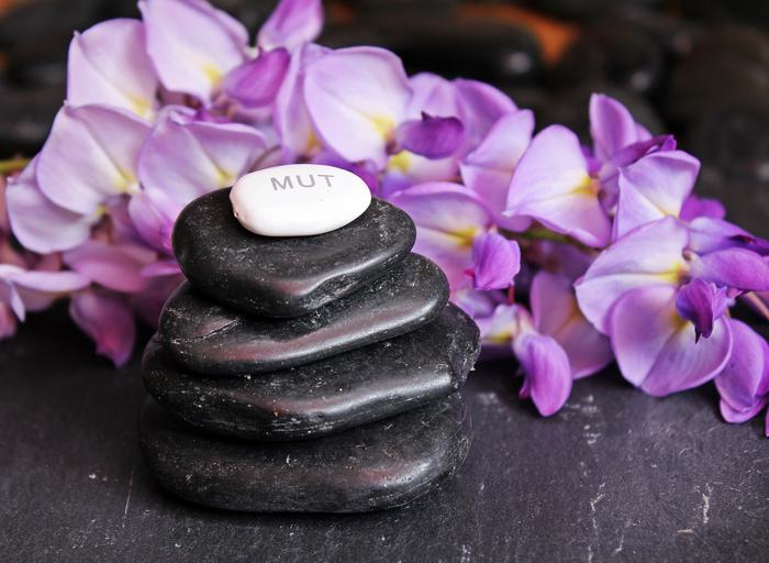 Keywords: balance meditation stones pebbles zen relaxation layered stacked stone tower tower silent courage stone mut wellness flower purple violet black purple flower flowers violet flower purple flowers background deco decoration decorative emotion scripture mut