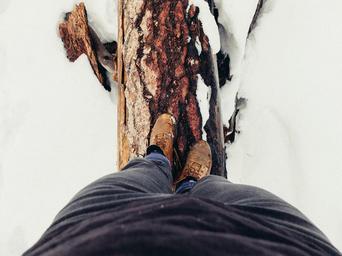 Keywords: balance walk hike tree branches bark man shoes standing nature outdoor stand