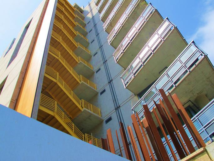 Keywords: balconies san diego stairs yellow red geometric pattern design building architecture skyward tall reaching upward reaching upward ladder