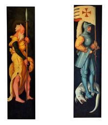 Keywords: Baldung, St Matthias et St Georges.jpg en Last here are two splendid paintings on wood representing saint Matthew and saint George They belong to a local master named Hans Baldung Grien who was born in Schwäbisch Gmünd but lived and created in Strasbourg Although painted around 1530 they carry a medieval style and symbolism that give them elegance and an atemporal aura of beauty http //www flickr com/photos/gmleuty/458969961/sizes/o/in/photostream/; http //dan romascanu net/wp-content/uploads/2010/11/DSC08034 jpg Creator Hans Baldung ca 1530 PD-old-100 Paintings by Hans Baldung in the Musée de l'Œuvre Notre-Dame de Strasbourg People wearing armour 16th-century paintings in Alsace 16th-century paintings from Germany Paintings of Christian saints in France Paintings of Saint Matthias Paintings of Saint George from Germany |