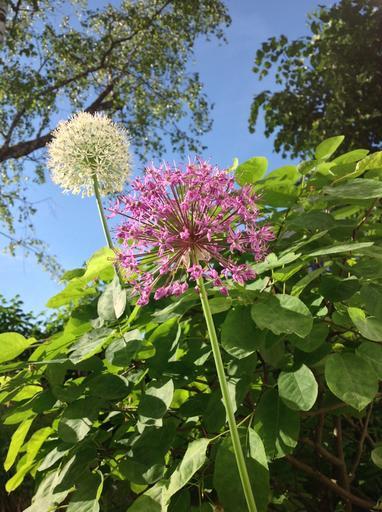Keywords: ball leek allium leek plant nature garden green white violet blue sky tree bush about ball flowers