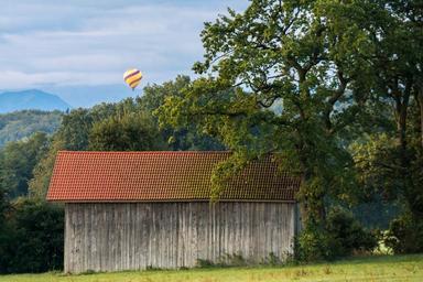 Keywords: balloon mountains sky clouds alpine hot air balloon fly air sports drive hot air balloon ride go balloon hut scale forest meadow pasture float upgrade colorful take off wind aircraft bavaria germany
