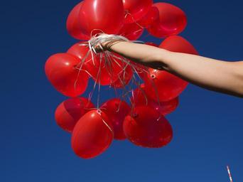 Keywords: balloons detention arm hand rise upgrade fly heart love romance romantic relationship red heart shaped wedding day wedding congratulations congratulation