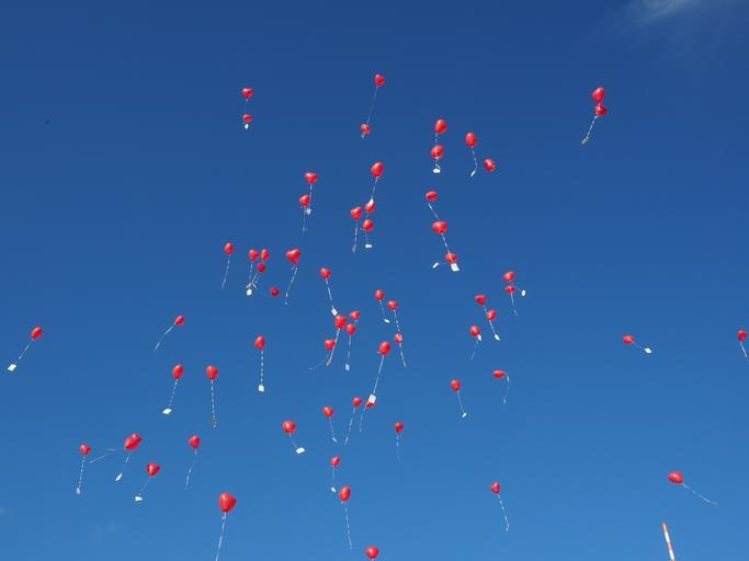 Keywords: balloons fly wedding congratulations congratulation rise upgrade heart love romance romantic relationship red heart shaped wedding day flap away entschweben