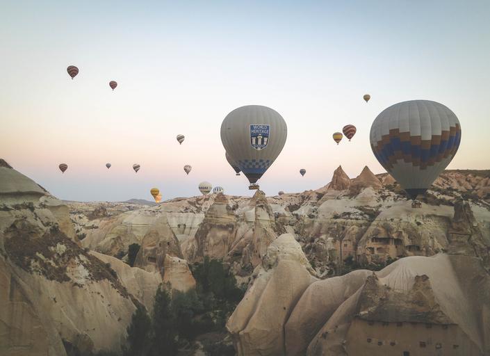 Keywords: balloons hot air balloons sky travel colorful basket transportation flight fly color high ballooning aerial cappadocia turkey rocks cliffs valleys