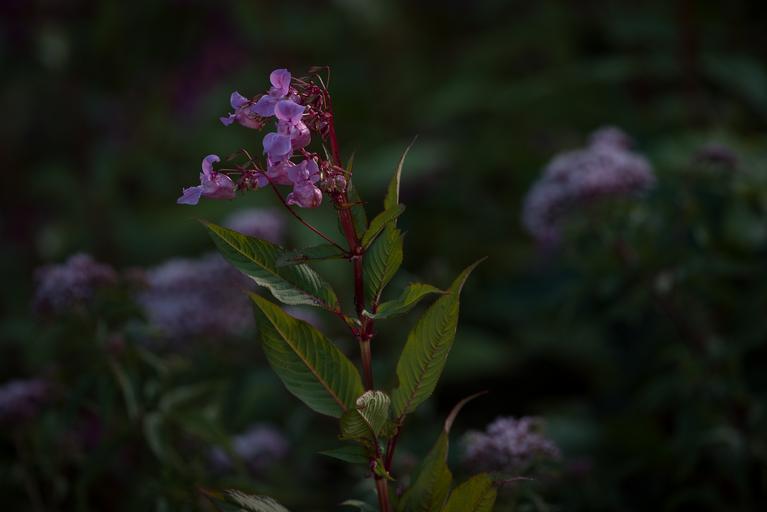 Keywords: balsam balsaminengewaechs himalayan balsam impatiens glandulifera indian springkraut red spring herb impatiens plant flowers pink pink flowers plage nature close twilight