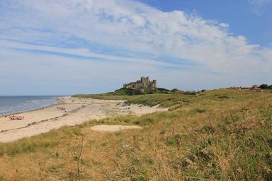 Keywords: bamburgh castle northumberland castle bamburgh england old north coast architecture sea sand building tourism fortification historical english fortress history dunes sky blue beach clouds heritage historic tourist architectural