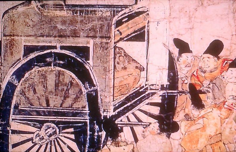 Keywords: Ban Dainagon - ox cart people B.jpg century 12 Color and ink on paper cm 31 2600 Idemitsu Museum of Art Tokyo Japan Detail of people next to ox-cart in which Tomo no Yoshio Ban Dainagon is exiled to Izu http //inoues net/tenno/dainagon html PD-Japan PD-Art Other versions Ban Dainagon Ekotoba |