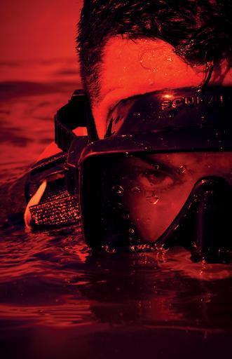 Keywords: banana river florida man military water swimming goggles mask training sailor night evening nature outside